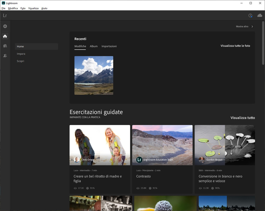 Esplora i tutorial in-app su Lightroom e gli esempi di fotografi professionisti e istruttori che ti illustreranno il loro processo creativo, guidandoti in ogni singolo passaggio.
